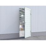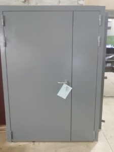 Двери изготавливаются из одной или двух створок, а механизм открывания и закрывания шарнирный. По требованиям заказчика противопожарные двери с сэндвич-панелями могут быть: