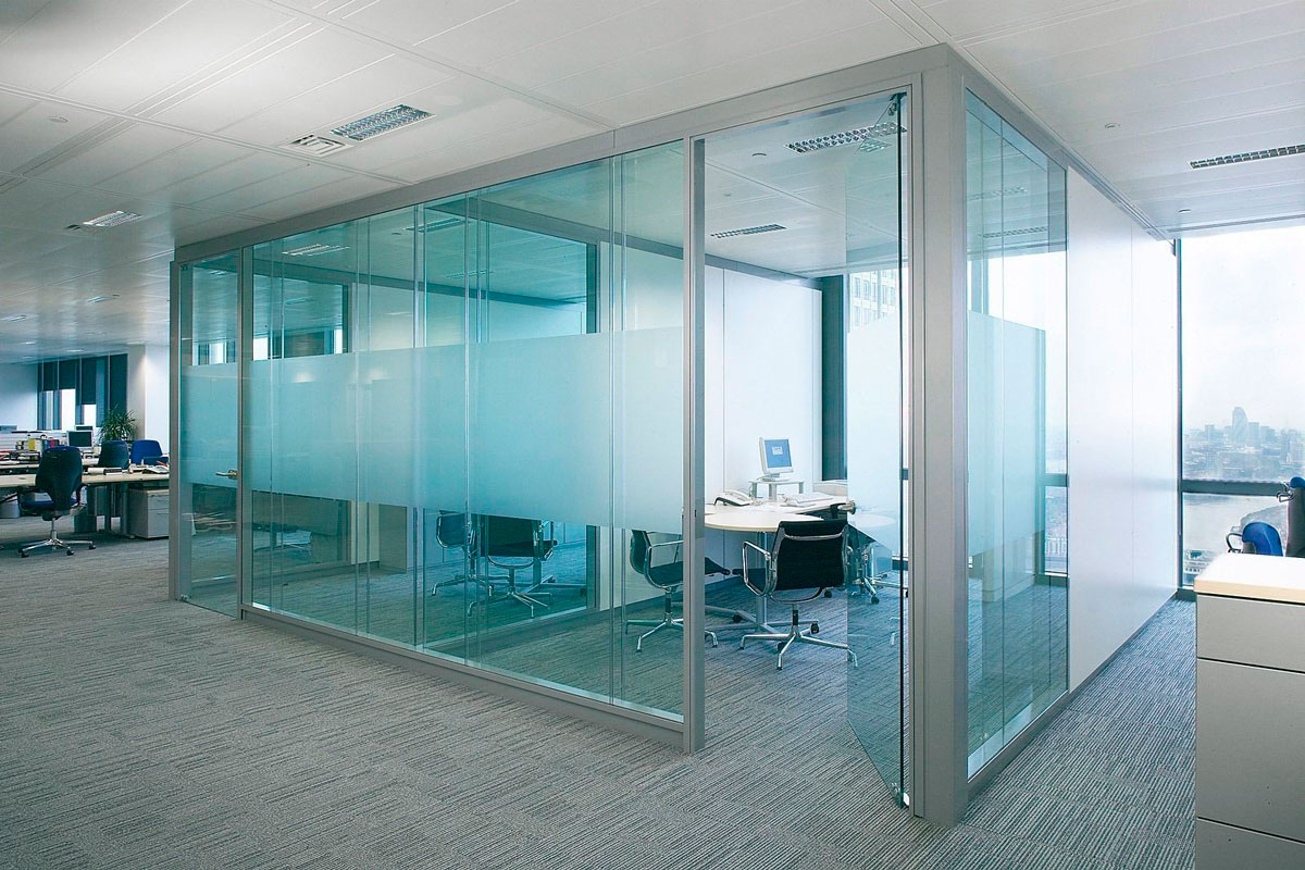 Противопожарные перегородки с двойным остеклением могут изготавливаться как в полностью остекленном варианте, так и в частично остекленном исполнении. Основное предназначение таких конструкций — это разделение общего помещения на несколько отдельных рабочих зон. При этом преследуется несколько целей:
